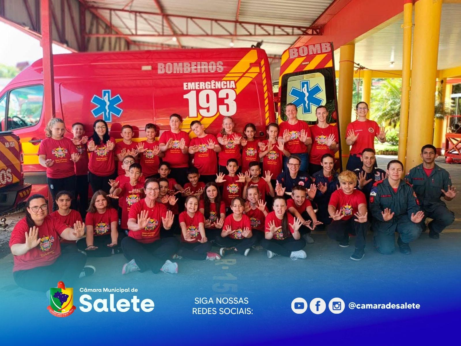 No dia 11 de novembro, alunos do 4º ano da Escola Bernardo Rohden e do Centro Educacional Prefeito Affonso Rohden participaram de uma visita ao quartel do Corpo de Bombeiros Militar de Taió, como parte do projeto bombeiro Mirim. A iniciativa, que envolve mais de 80 estudantes de Salete, foi idealizada pelo Presidente da Câmara Municipal, Vereador Odair José Ferreira, e pelo Vereador Eduardo Schuvedler, com o objetivo de promover a educação cidadã e a conscientização sobre segurança entre as crianças.