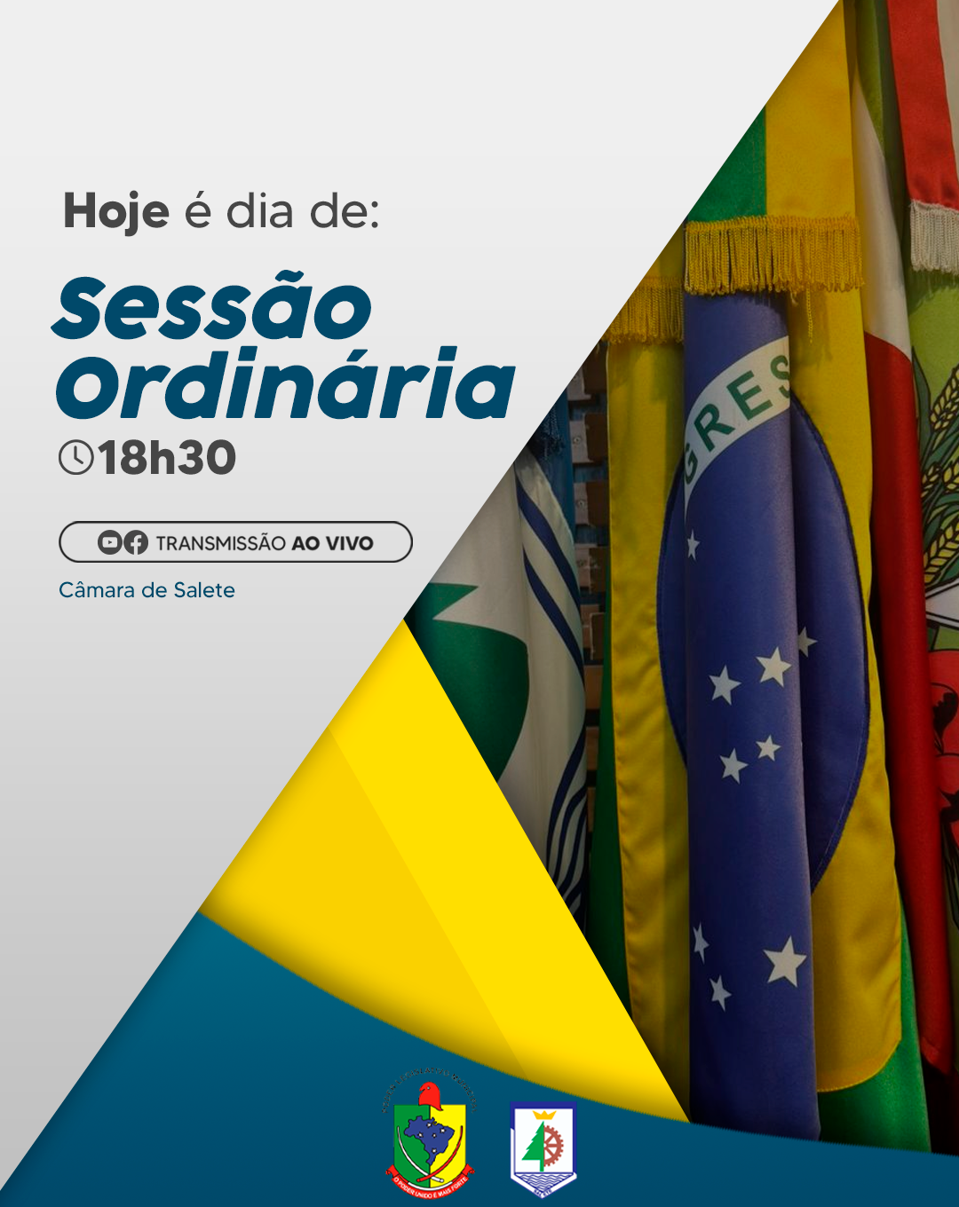 A Câmara Municipal de Salete convida a todos para a Sessão Ordinária que será realizada terça-feira (28/10), às 18h30, no Auditório Municipal João Bertoli.