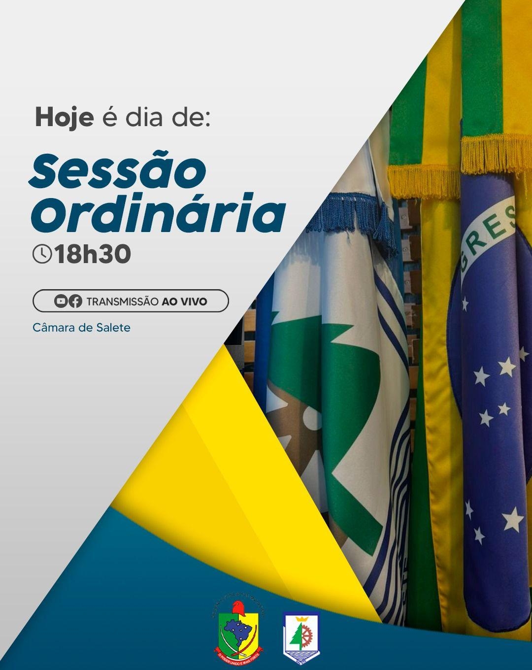 A Câmara Municipal de Salete convida a todos para a Sessão Ordinária que será realizada hoje (18/11), às 18h30, no Auditório Municipal João Bertoli.