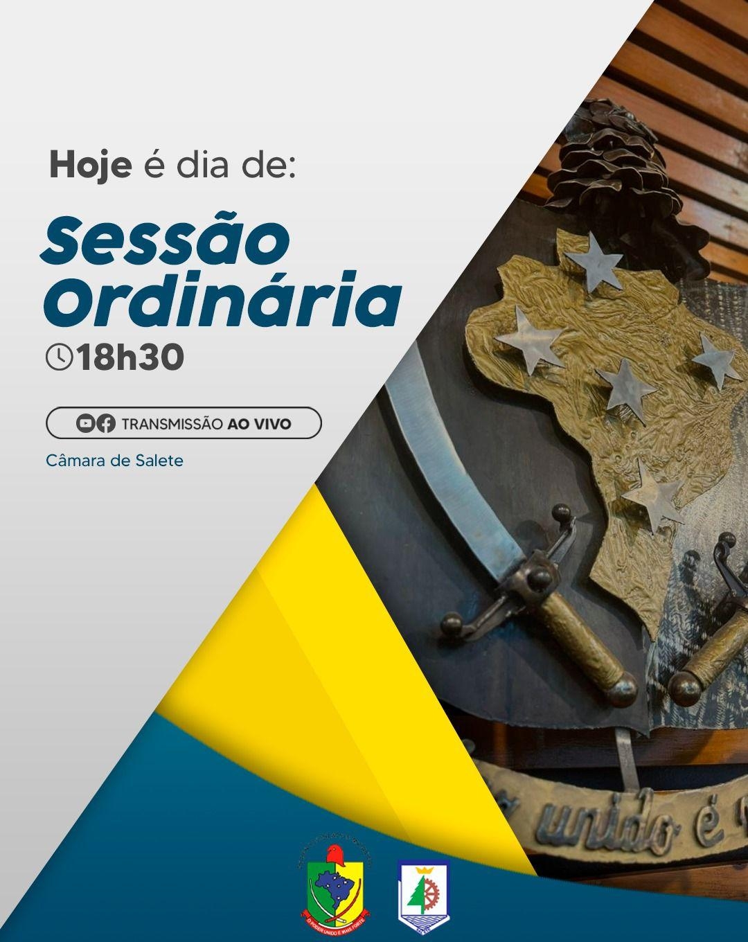 A Câmara Municipal de Salete convida a todos para a Sessão Ordinária que será realizada hoje (01/12), às 18h30, no Auditório Municipal João Bertoli, excepcionalmente adiantada para segunda-feira nesta semana.